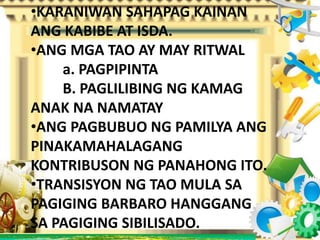 Ano ang magkakahawig na mga katangiang taglay ng mga sinaunang katutubo sa panahon ng pagkatatag ng kanilang mga kabihasnan. Kung ikaw ay isang Hindu o Muslim ano ang. Dito ay laganap ang pangangaso at pangongolekta ng mga halaman sa gubat.