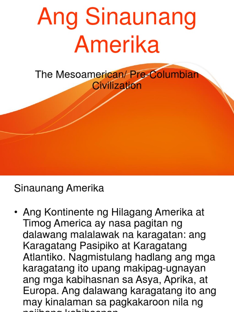 Ano ang magkakahawig na mga katangiang taglay ng mga sinaunang katutubo sa panahon ng pagkatatag ng kanilang mga kabihasnan. Magbigay ng ilan sa mga nakilalang pinuno sa mga si sinaunang kabihasnan sa meso amerika 1-3. Start studying Ang mga Kabihasnan sa Amerika.