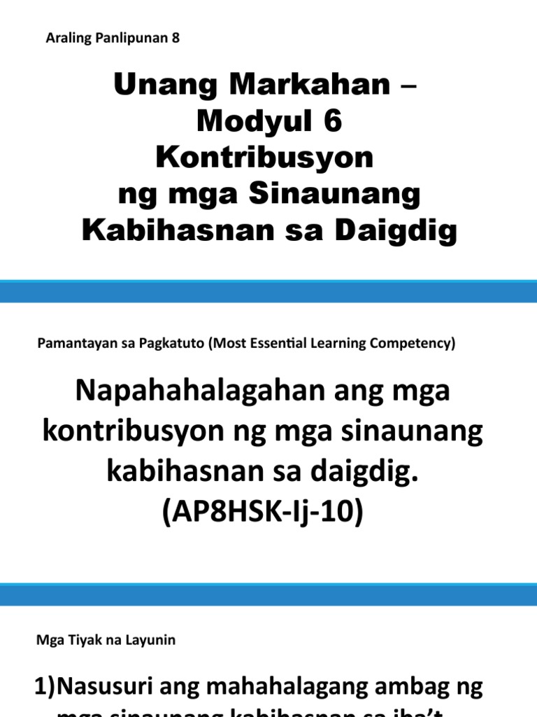 Ito rin ang humubog at patuloy na humuhubog sa pag-unlad ng kabuhayan at paglinang ng kultura ng. -Sa Silangan nito ay ang Kabundukang Zagros. Araling Panlipunan Ikawalong Baitang Alternative Delivery Module Unang Markahan Modyul 5.