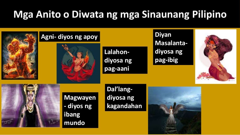 Siya ang pinakamataas sa mga diyos at diyosa na katulong niya sa papapanatili ng katiwasayan ng mundo. Paniniwalang relihiyon ng sinaunang pilipino. 12012018 Narito ang mga pangalan ng mga Diyos at Diyosa ng mga Paganong Pilipino Agawe - Diyos ng tubig Agni Diyos ng apoy Anitun-Tabu Diyos ng hangin at ulan Aman Diyari Diyos na patron ng mga tamadkatamaran Aman Ikabli Diyos o patron ng mga.
